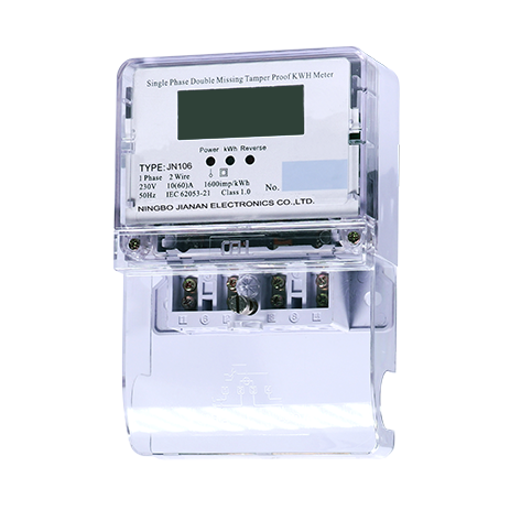JN106单相防窃电表是依据IEC系列标准开发的新一代电能表。电表采用数字信号处理芯片和先进的SMT技术。外壳使用高强度,阻燃,环境友好型材料,外观新颖,美观实用,绝缘强度高,耐腐蚀。